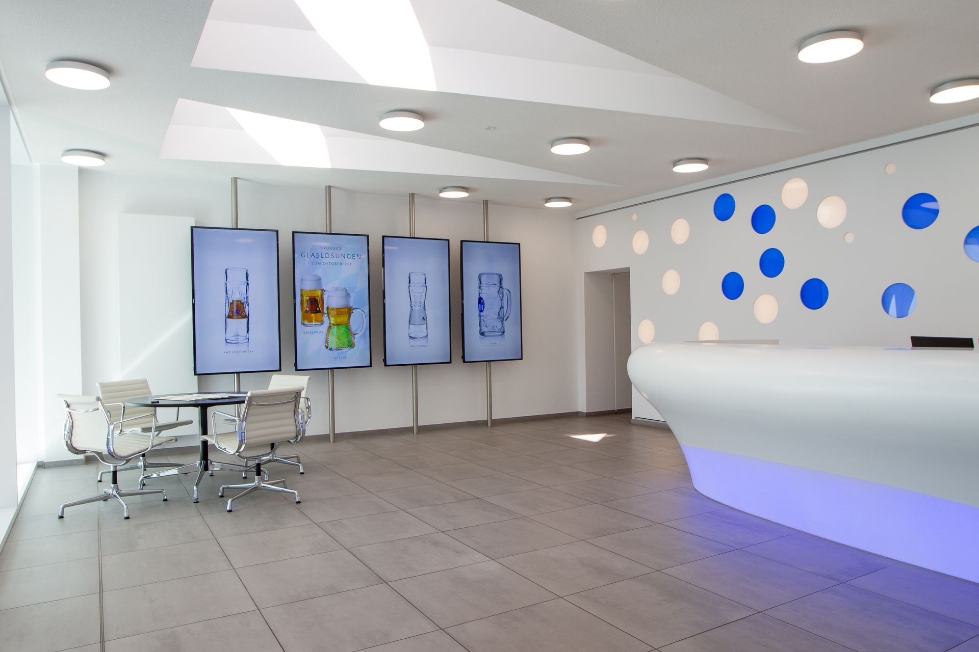 Im Foyer-Bereich der Firma Sahm in Höhr-Grenzhausen durften wir die Deckengestaltung sowie die Wandverkleidung mit Lichtdesignelementen übernehmen.